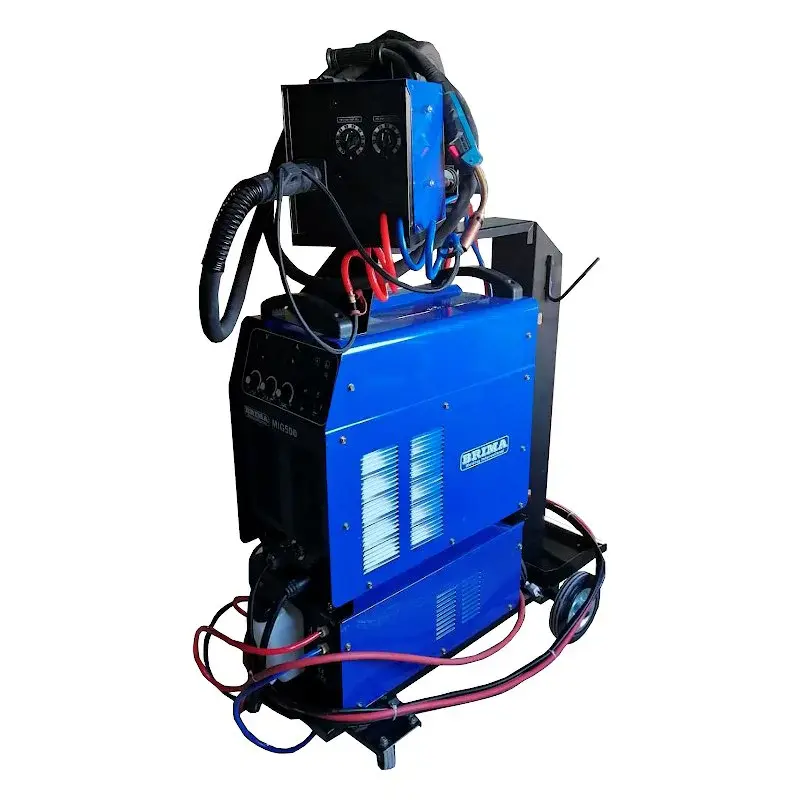 Сварочный полуавтомат BRIMA MIG-500 – инверторная модель профессионального класса с регулировкой сварочного тока от 60 до 500 А в режимах MIG/MAG. Для работы подходит проволока диаметром от 0,8 до 1,6 мм. Поставляется в комплекте с транспортировочной тележкой, блоком охлаждения, а также набором дополнительных принадлежностей для сварки.