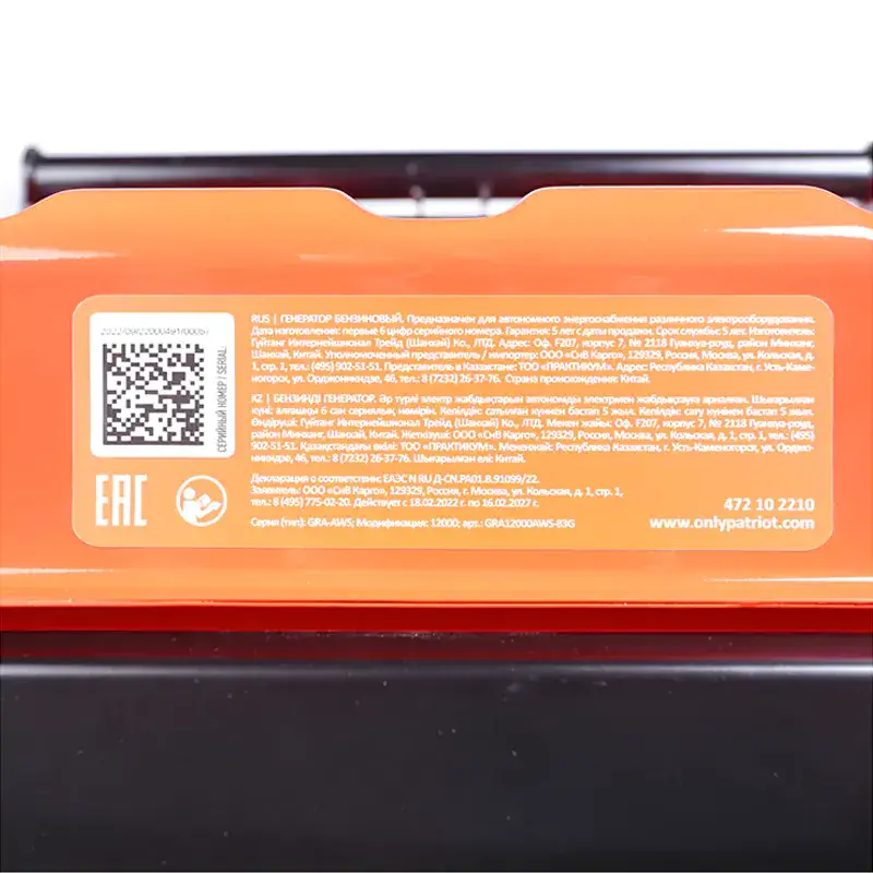 - Оснащен детектором угарного газа (при превышении нормы CO - генератор самоотключается).