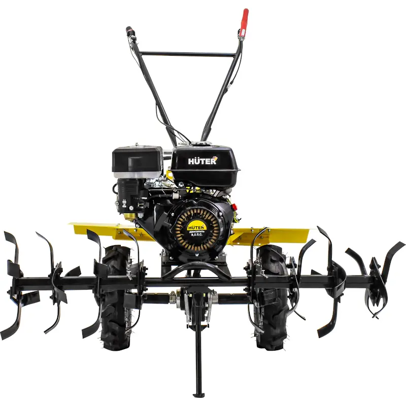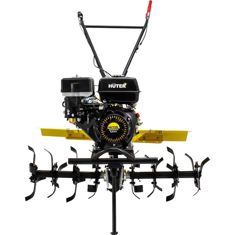 Бензиновый мотоблок Huter MK-9500P - профессиональная модель, способная работать как с фрезами из комплекта, так и с дополнительным навесным оборудованием. 4-тактный бензиновый двигатель выдает мощность в 9 л.с. Чугунный шестерёнчатый редуктор имеет 2 передние скорости и заднюю передачу, что позволяет подобрать оптимальный темп для работы.