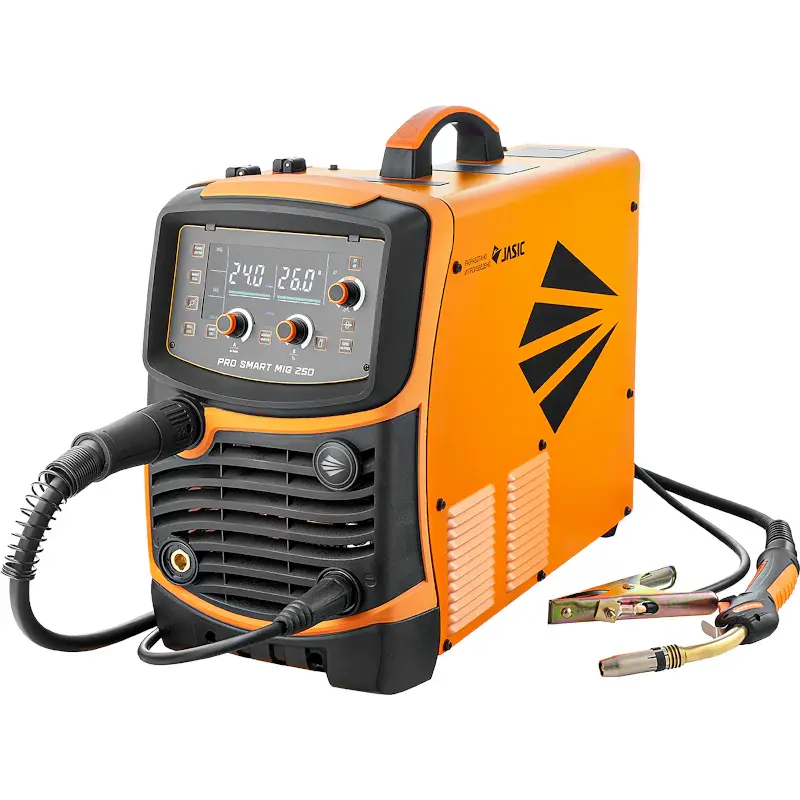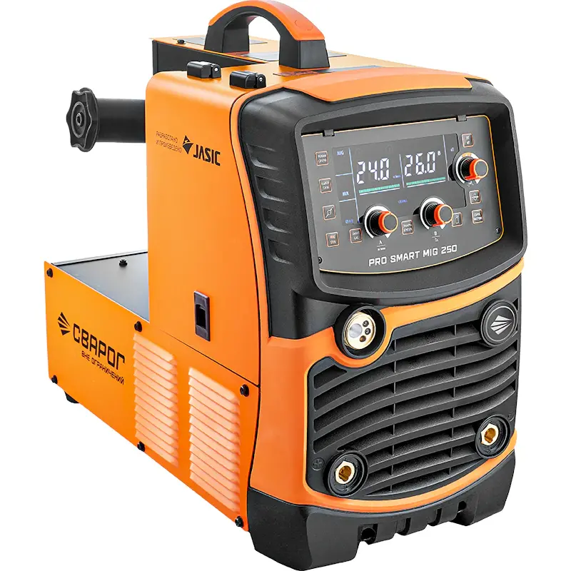 Сварочный инвертор Сварог PRO SMART MIG 250 представляет собой универсальное оборудование для сварки алюминия, меди, титана, нержавеющих, высоко- и низкоуглеродистых сталей, различных сплавов. Информативная панель с ЖК-дисплеем и понятными элементами управления упрощает настройку сварочных режимов. С помощью аппарата, работающего в диапазоне сварочного тока 50 А–270 А, можно выполнять следующие виды сварки: покрытыми электродами 1,6–5,0 мм, аргонодуговую TIG Lift и проволокой в среде защитных газов MIG/MAG с автоматической подачей. Устройство работает от трехфазной сети с питающим напряжением 380 В.