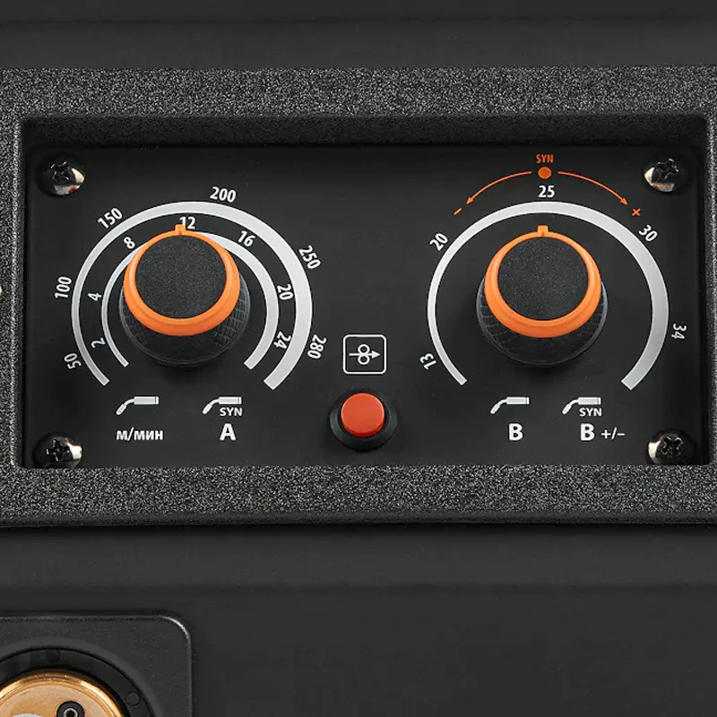 Оборудование поддерживает настройку сварочного процесса в синергетическом режиме. Аппарат самостоятельно подбирает оптимальные значения в зависимости от введенного параметра, например, размера электрода или проволоки. Текущие рабочие характеристики отображаются на цифровом дисплее. Индикаторы перегрева и перегрузки предупреждает о состоянии инверторного сварочного полуавтомата MIG/MAG. В режиме ручной сварки покрытыми электродами помогает наличие функций горячего старта, регулируемого форсажа дуги и защиты от залипания.